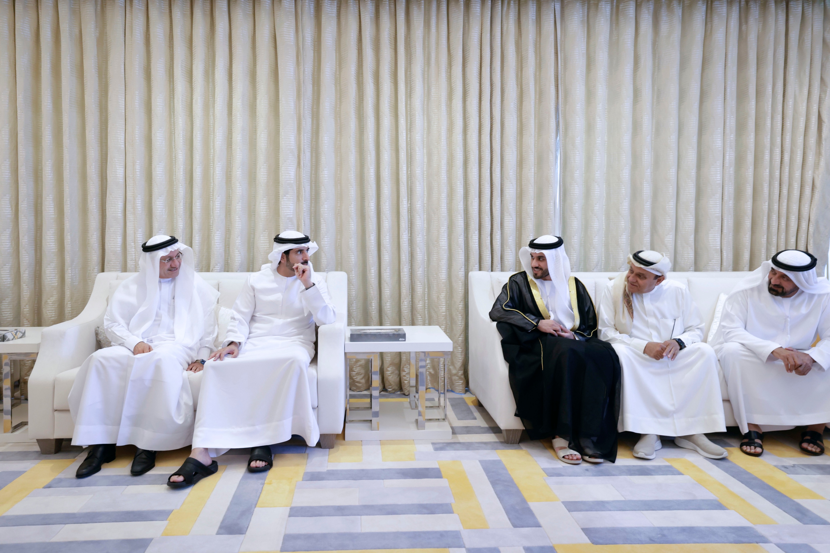 حضر سمو الشيخ حمدان بن محمد بن راشد آل مكتوم، ولي عهد دبي نائب رئيس مجلس الوزراء وزير الدفاع رئيس المجلس التنفيذي لإمارة دبي، يرافقه سمو الشيخ أحمد بن سعيد آل مكتوم، رئيس هيئة دبي للطيران المدني الرئيس الأعلى الرئيس التنفيذي لطيران الإمارات والمجموعة، حفل الاستقبال الذي أقامه معالي حميد محمد القطامي في دبي، بمناسبة زفاف نجله محمد، على كريمة راشد محمد بو غانم السويدي.