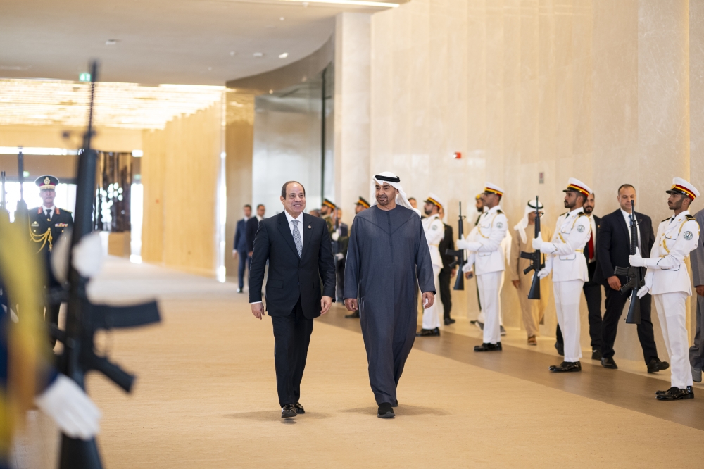 كما كان في وداع الرئيس المصري كل من سمو الشيخ حمدان بن محمد بن زايد آل نهيان، نائب رئيس ديوان الرئاسة للشؤون الخاصة، والشيخ محمد بن حمد بن طحنون آل نهيان، مستشار رئيس الدولة،