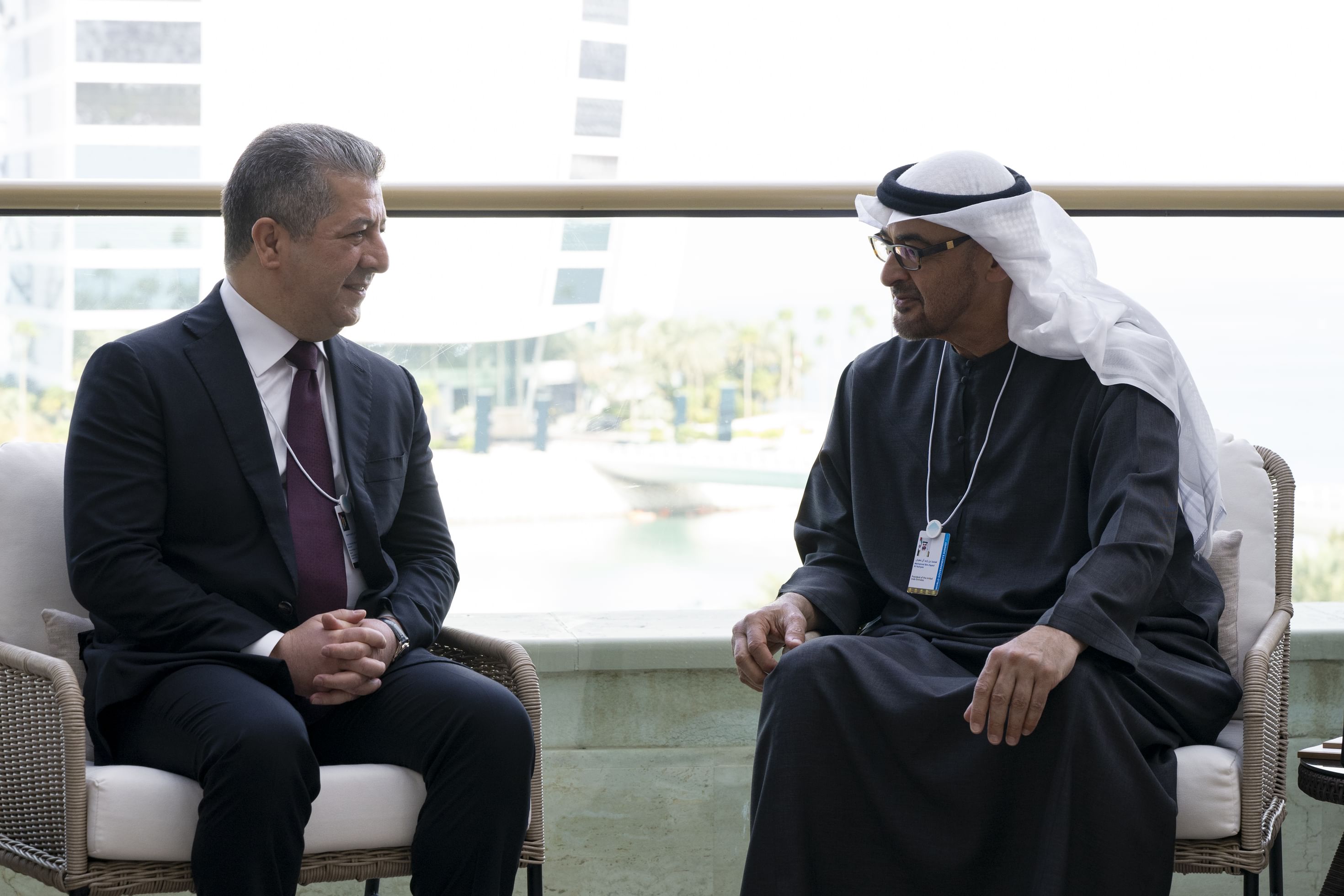 حضر اللقاءات كل من ،سمو الشيخ حمدان بن محمد بن زايد آل نهيان نائب رئيس ديوان الرئاسة للشؤون الخاصة، والشيخ محمد بن حمد بن طحنون آل نهيان مستشار رئيس الدولة، وريم بنت إبراهيم الهاشمي وزيرة دولة لشؤون التعاون الدولي، وسهيل بن محمد فرج فارس المزروعي وزير الطاقة والبنية التحتية، والدكتور سلطان بن أحمد الجابر وزير الصناعة والتكنولوجيا المتقدمة، وفيصل عبد العزيز البناي مستشار رئيس الدولة لشؤون الأبحاث الإستراتيجية والتكنولوجيا المتقدمة، والدكتور أحمد مبارك المزروعي رئيس مكتب رئيس الدولة للشؤون الإستراتيجية رئيس مكتب أبوظبي التنفيذي، وعبدالله بن محمد بن بطي آل حامد رئيس المكتب الوطني للإعلام، وعدد من سفراء الدولة وكبار المسؤولين والوفود المرافقة للقادة.