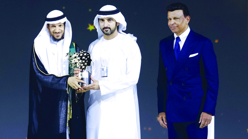 حمدان بن محمد خلال تكريم المُعلِّم منصور المنصور. من المصدر
