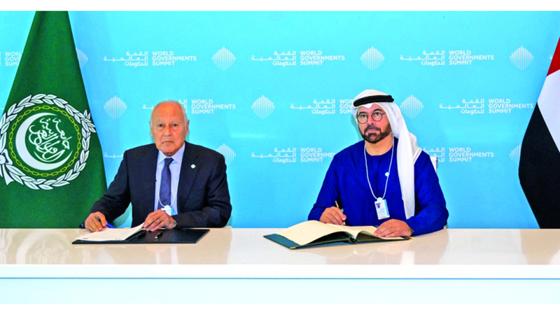 وقّع الاتفاقية أمين عام جامعة الدول العربية، أحمد أبوالغيط، ووزير شؤون مجلس الوزراء رئيس القمة العالمية للحكومات، محمد عبدالله القرقاوي.