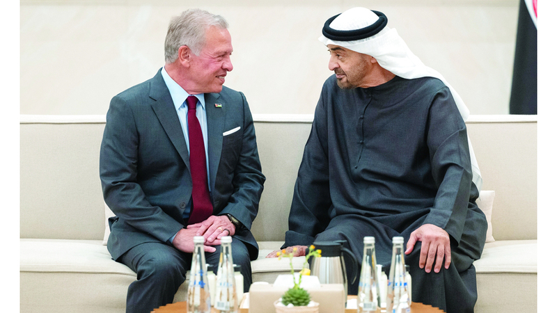 جاء ذلك خلال لقاء صاحب السموّ رئيس الدولة أخاه الملك عبدالله الثاني بن الحسين بقصر البطين في أبوظبي، الذي يقوم بزيارة أخوية إلى دولة الإمارات، ورحب سموّه بأخيه الملك عبدالله، مؤكداً متانة العلاقات التاريخية التي تجمع البلدين، والحرص المشترك على توسيع آفاق تعاونهما بما يحقق تطلعات شعبيهما الشقيقين.