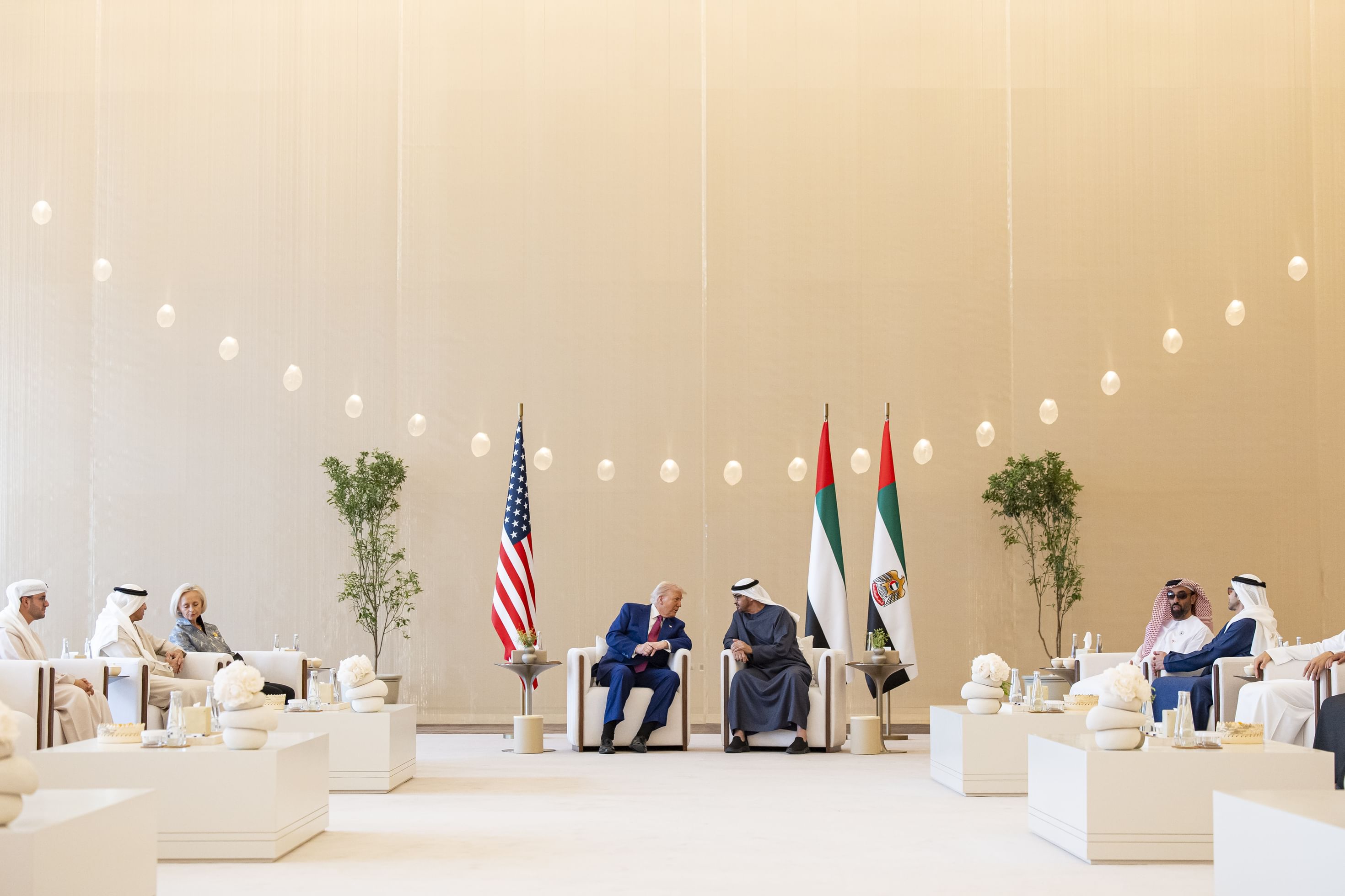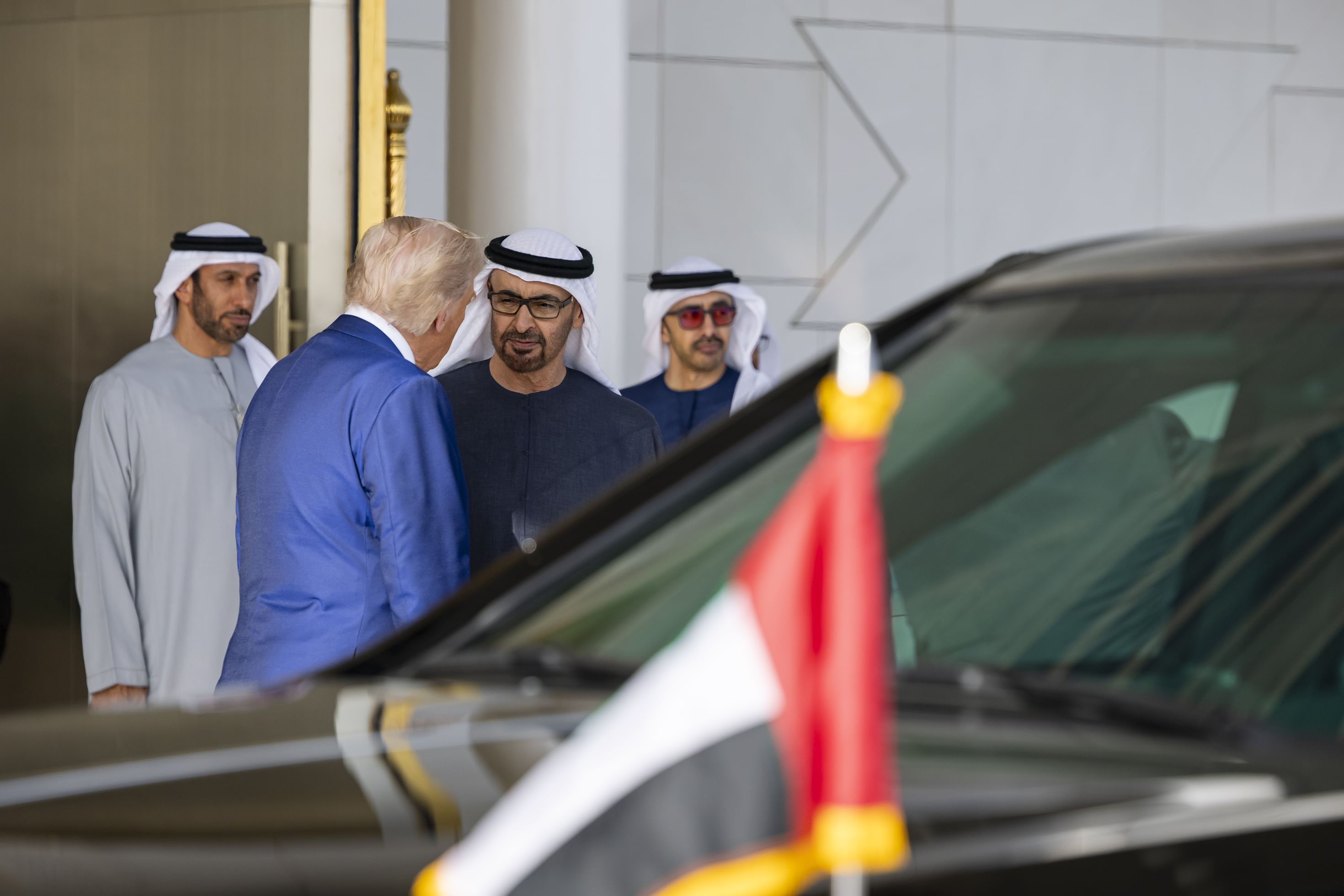 استقبل صاحب السمو الشيخ محمد بن زايد آل نهيان رئيس الدولة "حفظه الله" اليوم دونالد ترامب رئيس الولايات المتحدة الأميركية الذي يقوم بـ"زيارة دولة" إلى دولة الإمارات.