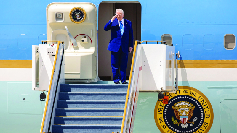 سرب من الطائرات العسكرية رافق طائرة ترامب حتى خروجها من أجواء الدولة