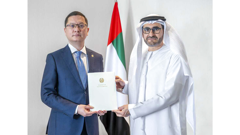 وتمنّى للسفير التوفيق والنجاح في أداء مهام عمله، مؤكّداً حرص دولة الإمارات على تعزيز شراكتها مع جمهورية كازاخستان في شتّى المجالات.