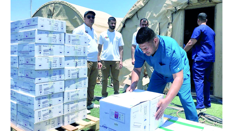 وشمل الدعم، الذي جرى تسليمه من خلال المستشفى الميداني الإماراتي جنوب القطاع، كميات كبيرة من الأدوية الأساسية، والمستهلكات الطبية العاجلة، ومواد خاصة بعلاج الأطفال، إلى جانب توفير 150 سريراً طبياً مجهزاً، وست خيام ميدانية مخصصة لإنشاء وحدات طبية مؤقتة، بهدف التخفيف من الضغط الهائل على المستشفيات التي تعاني أضراراً جسيمة أو توقفاً كاملاً عن العمل.