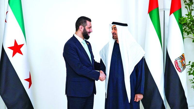 • أحمد الشرع يشكر محمد بن زايد على مواقف الإمارات الداعمة لسورية وشعبها، وحرصه على تعزيز العلاقات الأخوية بين البلدين.
