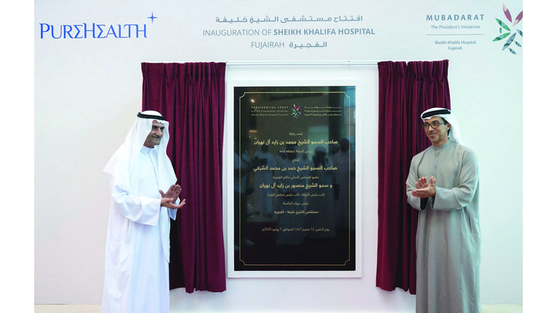 تحت رعاية صاحب السموّ الشيخ محمد بن زايد آل نهيان، رئيس الدولة، حفظه الله، افتتح صاحب السموّ الشيخ حمد بن محمد الشرقي، عضو المجلس الأعلى حاكم الفجيرة، وسموّ الشيخ منصور بن زايد آل نهيان، نائب رئيس الدولة نائب رئيس مجلس الوزراء رئيس ديوان الرئاسة، مستشفى الشيخ خليفة في إمارة الفجيرة رسمياً، الذي أُنشئ ضمن مبادرات صاحب السموّ رئيس الدولة، بكُلفة إجمالية بلغت 843 مليون درهم، ويُعدّ من أهم المشروعات الصحية الحديثة في دولة الإمارات.