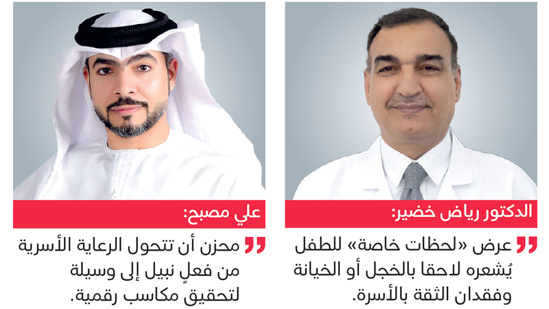 وقالوا لـ«الإمارات اليوم» إن تلك الظاهرة تفتقر إلى الحد الأدنى من الإحساس بالمسؤولية، إذ يتم استغلال معاناة مرضى من أجل زيادة المشاهدات، وهو تصرّف يرقى إلى الاستغلال العاطفي والإساءة النفسية، كما أنه يُفقد المريض الشعور بالأمان والدعم، ويجعله عرضة للإهانة أو الحرج أو الاستغلال، خصوصاً إذا كان غير قادر على التعبير عن رفضه، أو لا يعي ما يحدث من حوله، ما قد يؤدي إلى انسحاب الرضا الاجتماعي، ويقوّض ثقتهم بأقرب الناس إليهم.