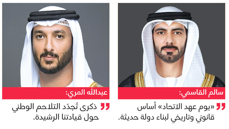 وأكد وزير الاقتصاد والسياحة، عبدالله بن طوق المري، أن «يوم عهد الاتحاد» يعزز في وجدان الأجيال روح الانتماء والوفاء، ويُجدّد التلاحم الوطني حول قيادتنا الرشيدة، ويُجسد الاعتزاز بالتضحيات والجهود التي بُذلت لبناء اتحاد قوي يواكب طموحات شعبه ويحقق تطلعاته، وأضاف: «نستحضر في هذا اليوم ذكرى لحظة مفصلية في تاريخ دولة الإمارات، حين تم توقيع وثيقة الاتحاد ودستور الدولة، لتبدأ معها مرحلة استثنائية من التنمية والازدهار».