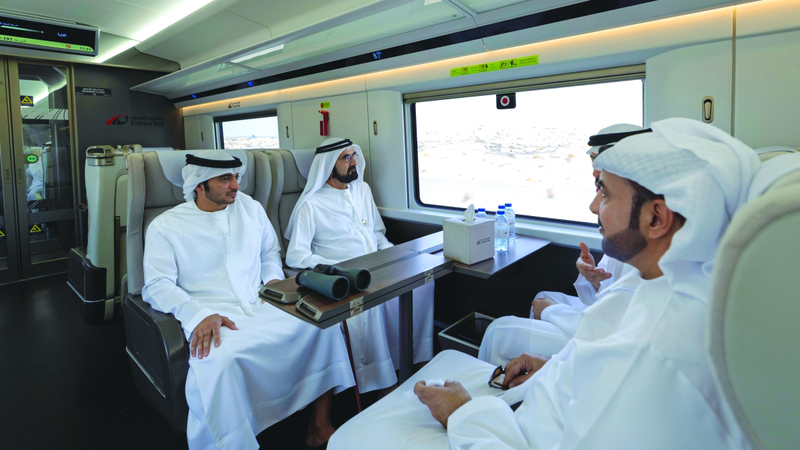 وتفقّد صاحب السموّ الشيخ محمد بن راشد آل مكتوم، قطار الاتحاد، حيث استقل رحلة القطار المتجهة من إمارة دبي إلى إمارة الفجيرة، وذلك في إطار حرص سموه على متابعة المشاريع التطويرية الرئيسة التي يتم تنفيذها في سياق خطط التطوير الشاملة للبنية التحتية التي تخدم مختلف مناطق الدولة، والوقوف على مدى التقدم المتحقق في تنفيذها بما يواكب المستهدفات الاستراتيجية للدولة للمرحلة المقبلة.