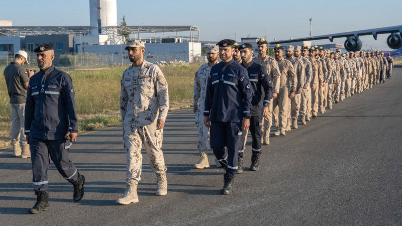 فِرَق متخصصة من الإمارات لدى وصولها إلى العاصمة الألبانية تيرانا للمشاركة في إخماد الحرائق. وام