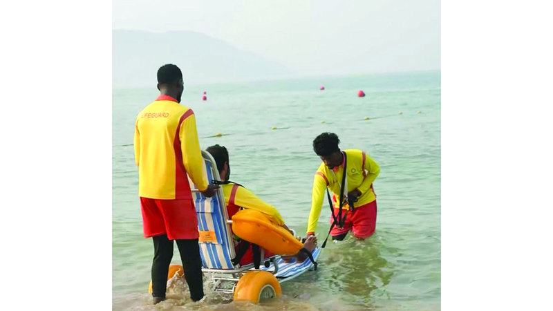 كراسي عائمة على شواطئ خورفكان لتمكين ذوي الهمم من السباحة