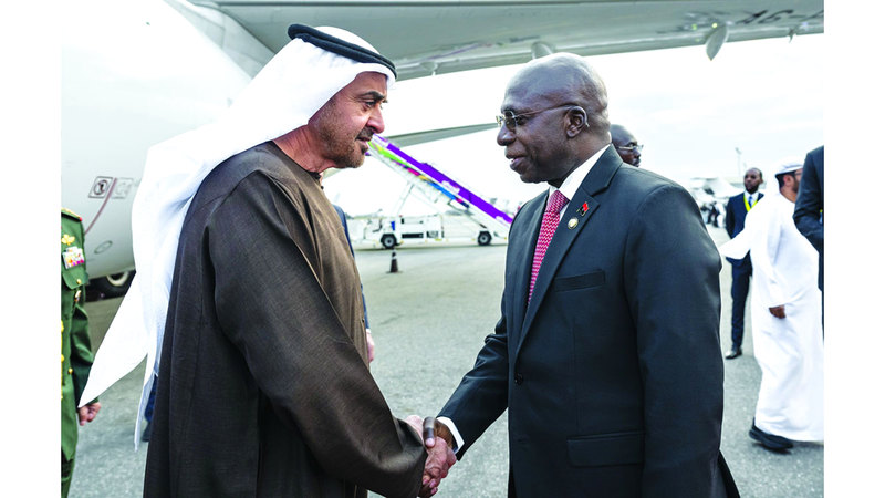 رئيس الدولة لدى وصوله إلى جمهورية أنغولا. وام