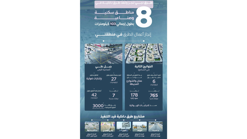 «طرق دبي» تنفذ طرقاً داخلية في 8 مناطق سكنية وصناعية
