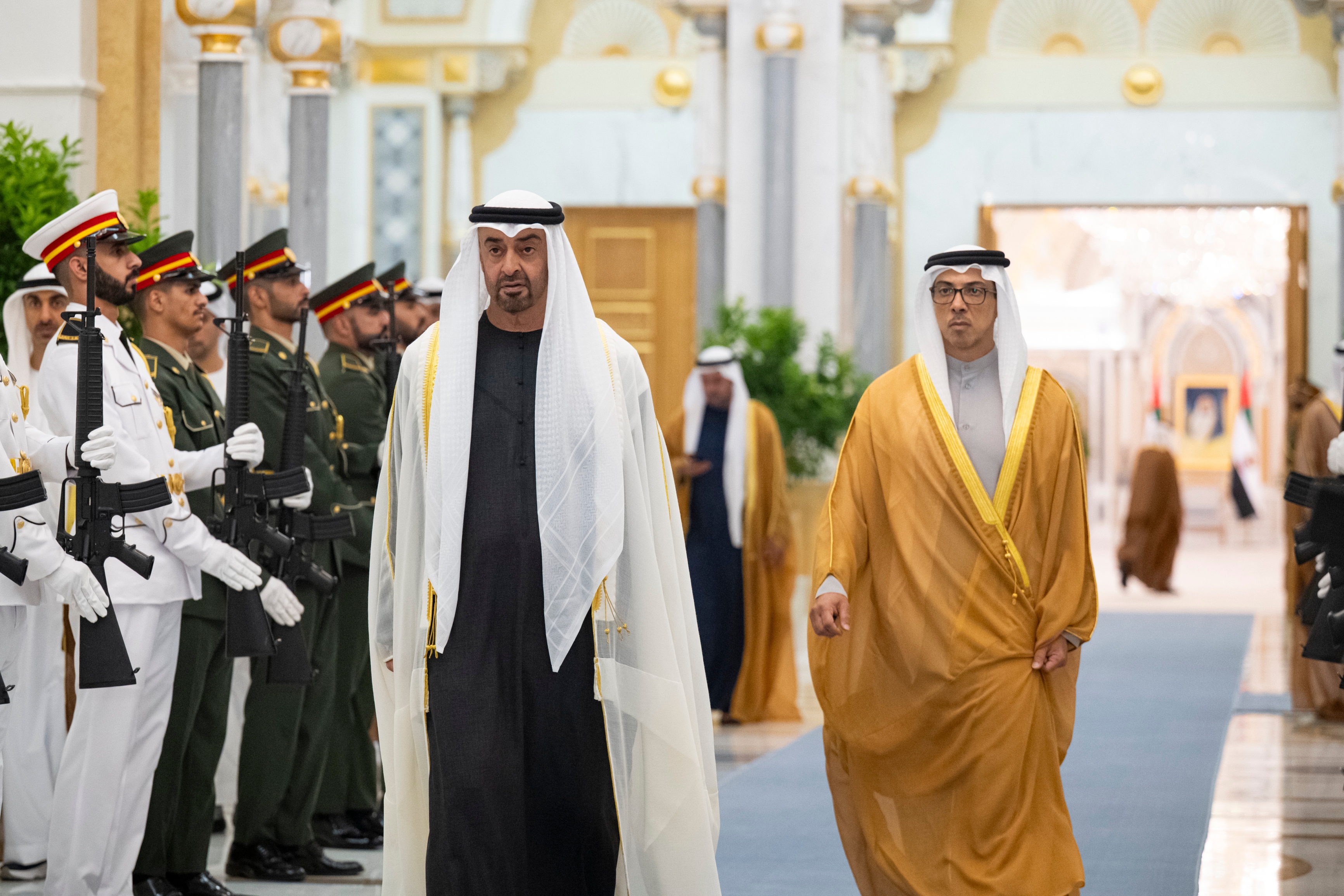 أدى اليمين القانونية أمام صاحب السمو الشيخ محمد بن زايد آل نهيان رئيس الدولة "حفظه الله"، اليوم، عدد من سفراء دولة الإمارات العربية المتحدة الجدد المعينين لدى الدول الشقيقة والصديقة، كما تسلم سموه أوراق اعتماد عدد من السفراء المعينين لدى الدولة، وذلك بحضور سمو الشيخ منصور بن زايد آل نهيان نائب رئيس الدولة نائب رئيس مجلس الوزراء رئيس ديوان الرئاسة.