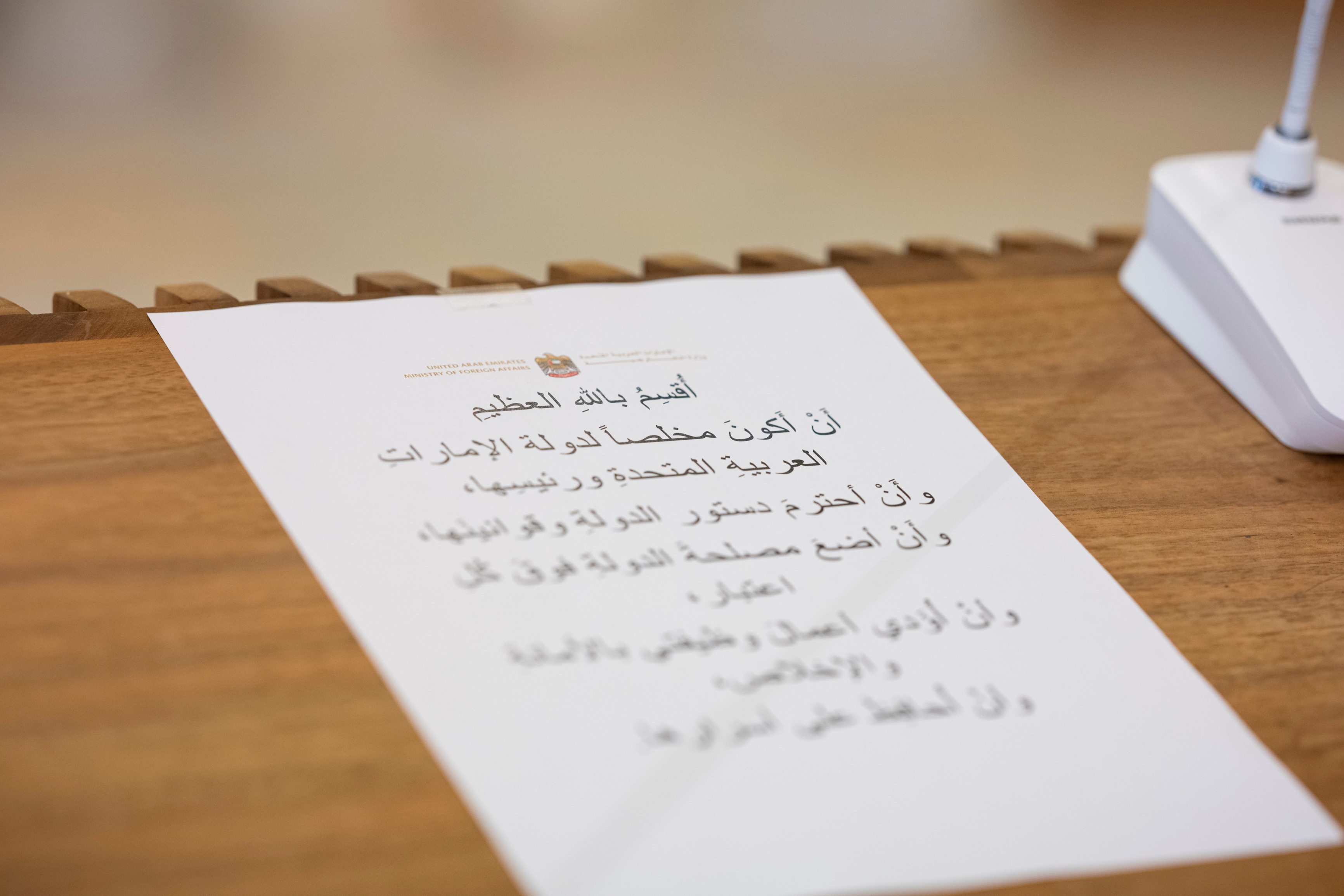 وقد أدى اليمين سعادة كل من، مطر سالم علي مران الظاهري سفير الدولة المعين لدى المملكة العربية السعودية، وحمد راشد علي بن علوان الحبسي سفير الدولة المعين لدى الجمهورية العربية السورية، وفهد سالم سعيد ديين الكعبي سفير الدولة المعين لدى الجمهورية اللبنانية، وعلي راشد أحمد راشد المزروعي سفير الدولة المعين لدى دولة ليبيا، وخالد عبد الله حميد عبد الله بالهول سفير الدولة المعين لدى الجمهورية الإسلامية الإيرانية، وسالم محمد سالم البواب الزعابي سفير الدولة المعين لدى جمهورية باكستان الإسلامية، وخميس راشد أحمد لبصيلي الشميلي سفير الدولة المعين لدى مونتينيغرو، وعبد الله جاسم محمد سيف الشامسي سفير الدولة المعين لدى جمهورية غينيا بيساو، وسيف محمد خلفان بينونة الكتبي سفير الدولة المعين لدى أفغانستان.