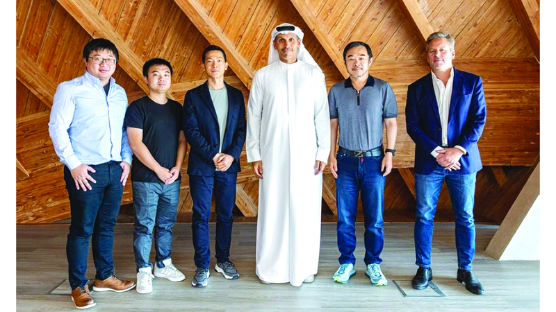 خلدون المبارك وفريق «جي 42» خلال إطلاق «النموذج». وام