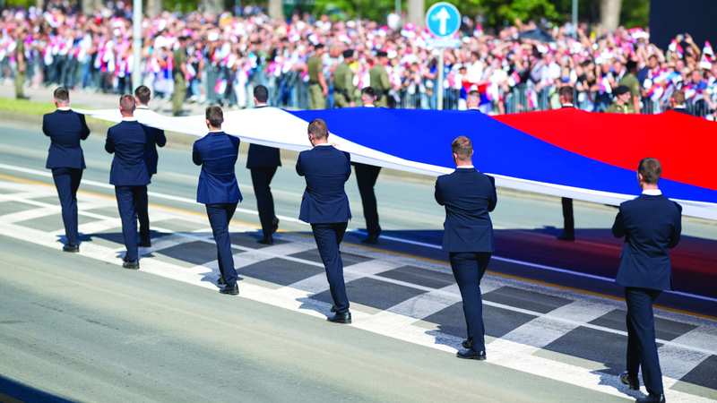 • الفعاليات شملت عرض العلم الصربي بطول 300 متر أمام المنصة الرئيسة للعرض.