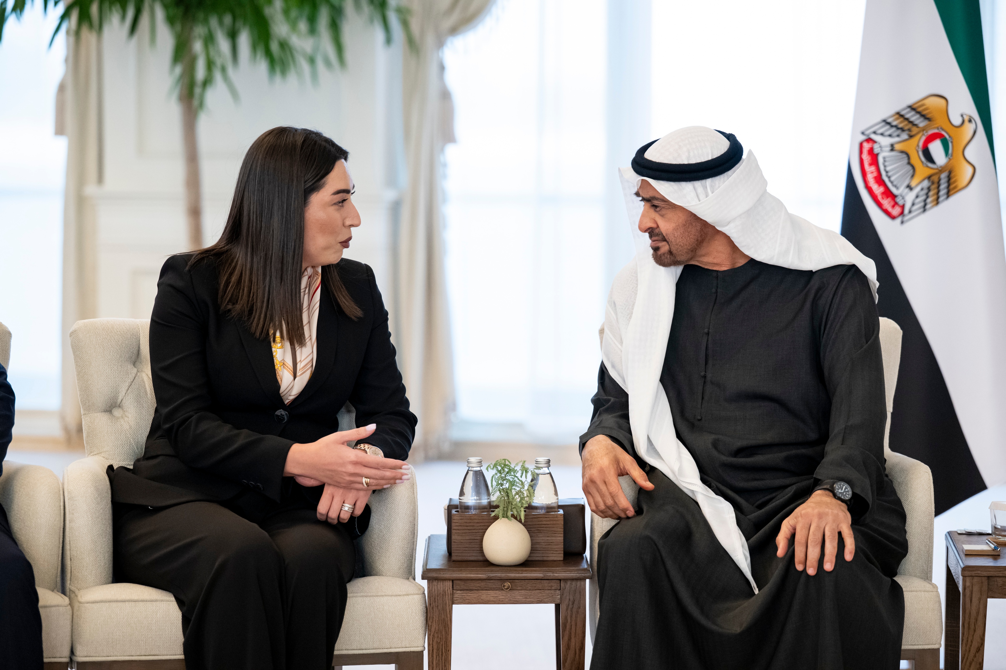 استقبل صاحب السمو الشيخ محمد بن زايد آل نهيان رئيس الدولة "حفظه الله" اليوم في مجلس قصر البحر في أبوظبي، أربينه سركيسيان وزيرة الشؤون الداخلية في جمهورية أرمينيا.