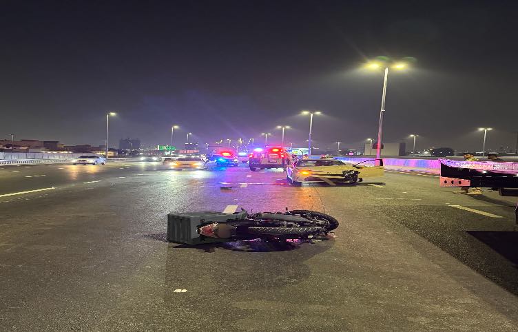 إصابة سائق دراجة نارية بليغة بسبب القيادة عكس السير في دبي