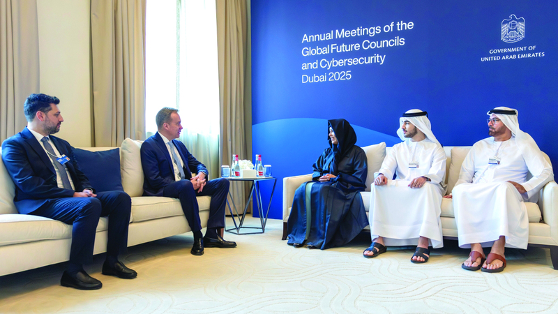 التقت سموّ الشيخة لطيفة بنت محمد بن راشد آل مكتوم، رئيسة هيئة الثقافة والفنون في دبي، بحضور سموّ الشيخ محمد بن راشد بن محمد بن راشد آل مكتوم، الرئيس التنفيذي للمنتدى الاقتصادي العالمي، بورغ برينده، خلال مشاركة سموّها في فعاليات الاجتماع السنوي لمجالس المستقبل العالمية والأمن السيبراني.