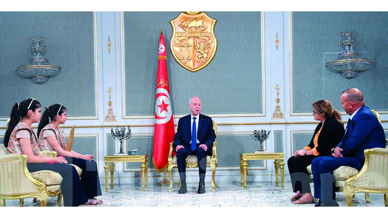 الرئيس التونسي يستقبل التوأم بيسان وبيلسان كوكة بطلتي تحدي القراءة العربي 2025