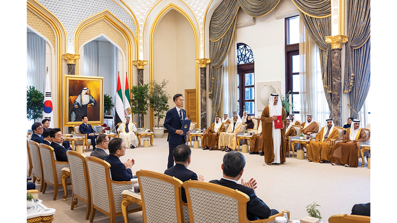 جاء ذلك خلال جلسة المحادثات الرسمية التي عقدها سموه في قصر الوطن، مع الرئيس الكوري الذي قام بـ«زيارة دولة» إلى دولة الإمارات.