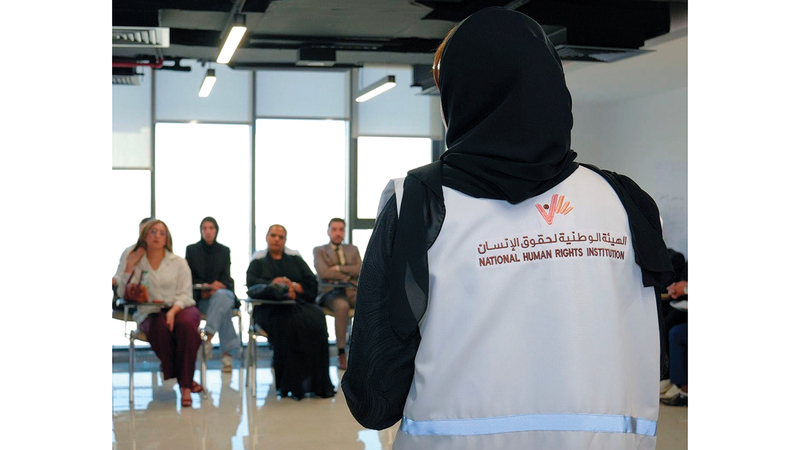 نظمت الهيئة الوطنية لحقوق الإنسان، الورشة التوعوية الثانية لموظفي مراكز استقدام العمالة المساعدة، بالتعاون مع وزارة الموارد البشرية والتوطين، وذلك بمقر الوزارة في أبوظبي.