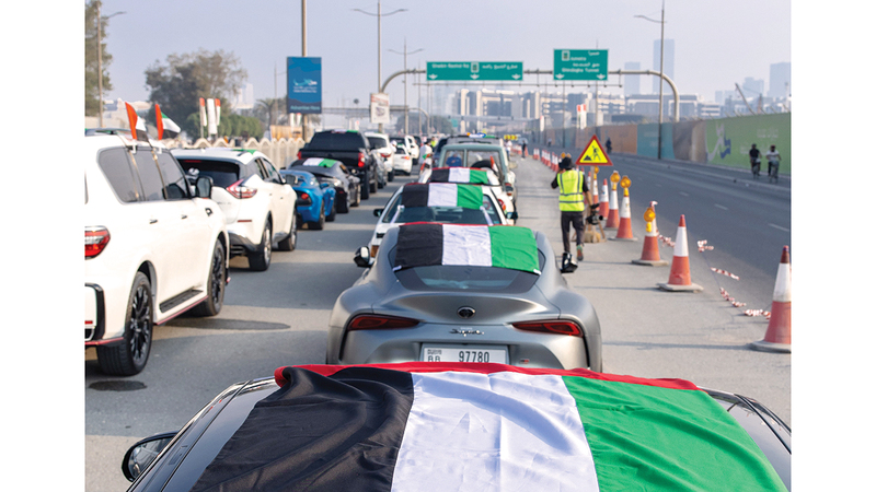 نظّم «براند دبي»، الذراع الإبداعية للمكتب الإعلامي لحكومة دبي، بالتعاون مع لجنة تأمين الفعاليات في إمارة دبي، «مسيرة الاتحاد»، التي جابت، أمس، أحد أهم شوارع الإمارة بمشاركة أكثر من 500 سيارة، وذلك في مشهد عكس روح الاتحاد، وجسّد معاني الانتماء إلى الوطن، والوفاء لقيادته الرشيدة، والاعتزاز بيوم تأسيس دولة الاتحاد، وتزامناً مع احتفالات الدولة بعيد الاتحاد الـ54.