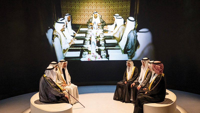 وقام صاحب السمو رئيس الدولة وأصحاب السمو الحكام والشيوخ بجولة في المتحف، اطلعوا خلالها على معروضات ووثائق وقطع أثرية ومقتنيات تتناول محطات بارزة من تاريخ دولة الإمارات وماضيها الضارب في جذور التاريخ وإرث المؤسس الشيخ زايد، وتضم مجموعة من التسجيلات الصوتية والصور الفوتوغرافية ومقاطع فيديو أرشيفية ومقتنيات شخصية.