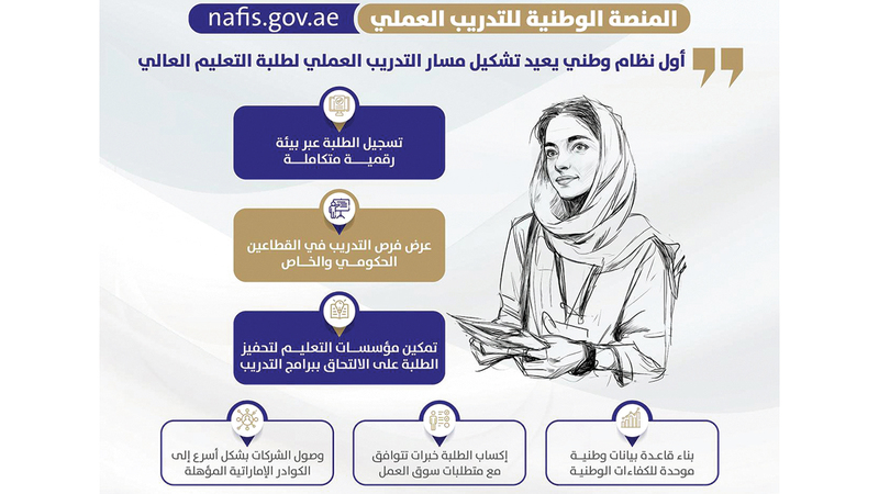 وتتيح المنصة، التي تم إطلاقها ضمن منصة «نافس»، للطلبة الجامعيين التسجيل في فرص التدريب العملي النوعي في سوق العمل بالدولة، عبر بيئة رقمية متكاملة، كما تتيح لمؤسسات وشركات القطاعين الحكومي والخاص عرض فرص التدريب المتوافرة لديها، بما يرسّخ دورها شريكاً أساسياً في المنظومة الوطنية للتدريب العملي، ويسهم في إعداد أجيال مؤهلة تمتلك الخبرات والمهارات العملية المطلوبة في سوق العمل، من خلال تمكين الطلبة من الانخراط في برامج تدريبية عالية المستوى، ضمن مختلف القطاعات الحيوية، بما يعزّز التكامل بين النظري والعملي في رحلة الطالب، ويسهم في دعم جهود التنمية الاقتصادية والمعرفية في الدولة.