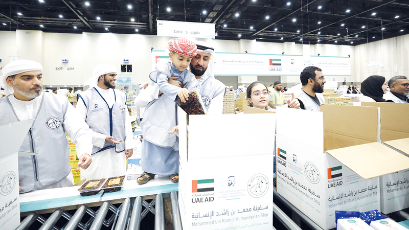 توافد آلاف المتطوعين من مختلف الجنسيات والفئات العمرية، في مشهد إنساني نابض بالحياة، على مركز دبي للمعارض - إكسبو، صباح أمس، للمشاركة في تجهيز «سفينة محمد بن راشد الإنسانية» التي تضم سلالاً غذائية تحتوي على أكثر من 10 ملايين وجبة، ضمن مبادرة أطلقتها مؤسسة «مبادرات محمد بن راشد آل مكتوم العالمية»، بالتعاون مع عملية «الفارس الشهم 3»، التي أطلقتها دولة الإمارات لدعم الشعب الفلسطيني الشقيق وتلبية الاحتياجات العاجلة لأهالي قطاع غزة.