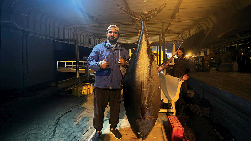 هيثم البلوشي مع السمكة العملاقة. الإمارات اليوم