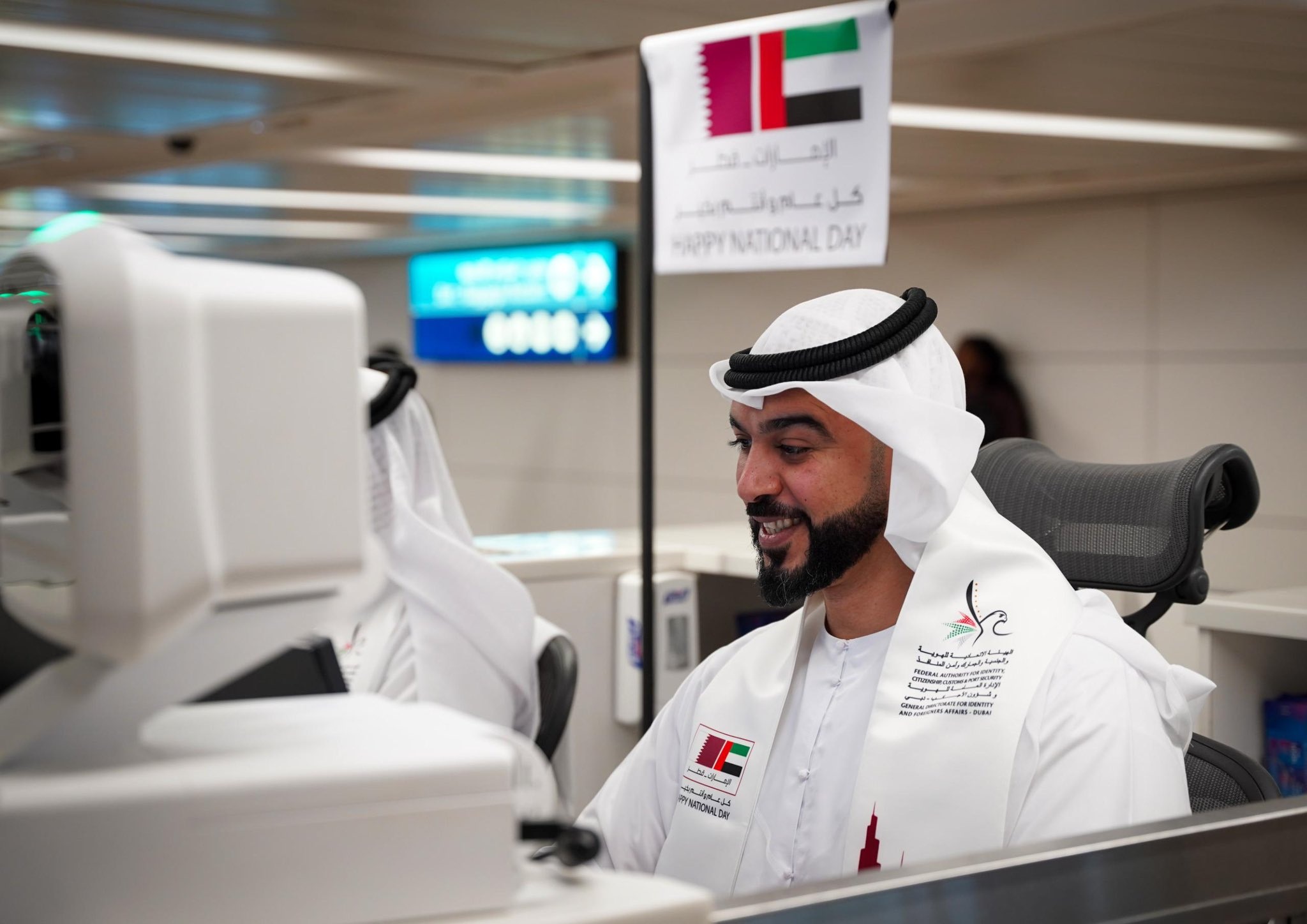 احتفاءً باليوم الوطني القطري، استقبلت الإدارة العامة للهوية وشؤون الأجانب – دبي المسافرين القادمين إلى الدولة بختم خاص يحمل عبارة “الإمارات – قطر، كل عام وأنتم بخير”، في لفتة تعبّر عن متانة الروابط بين البلدين، وذلك تجسيداً للعلاقات الأخوية بين البلدين الشقيقين.
