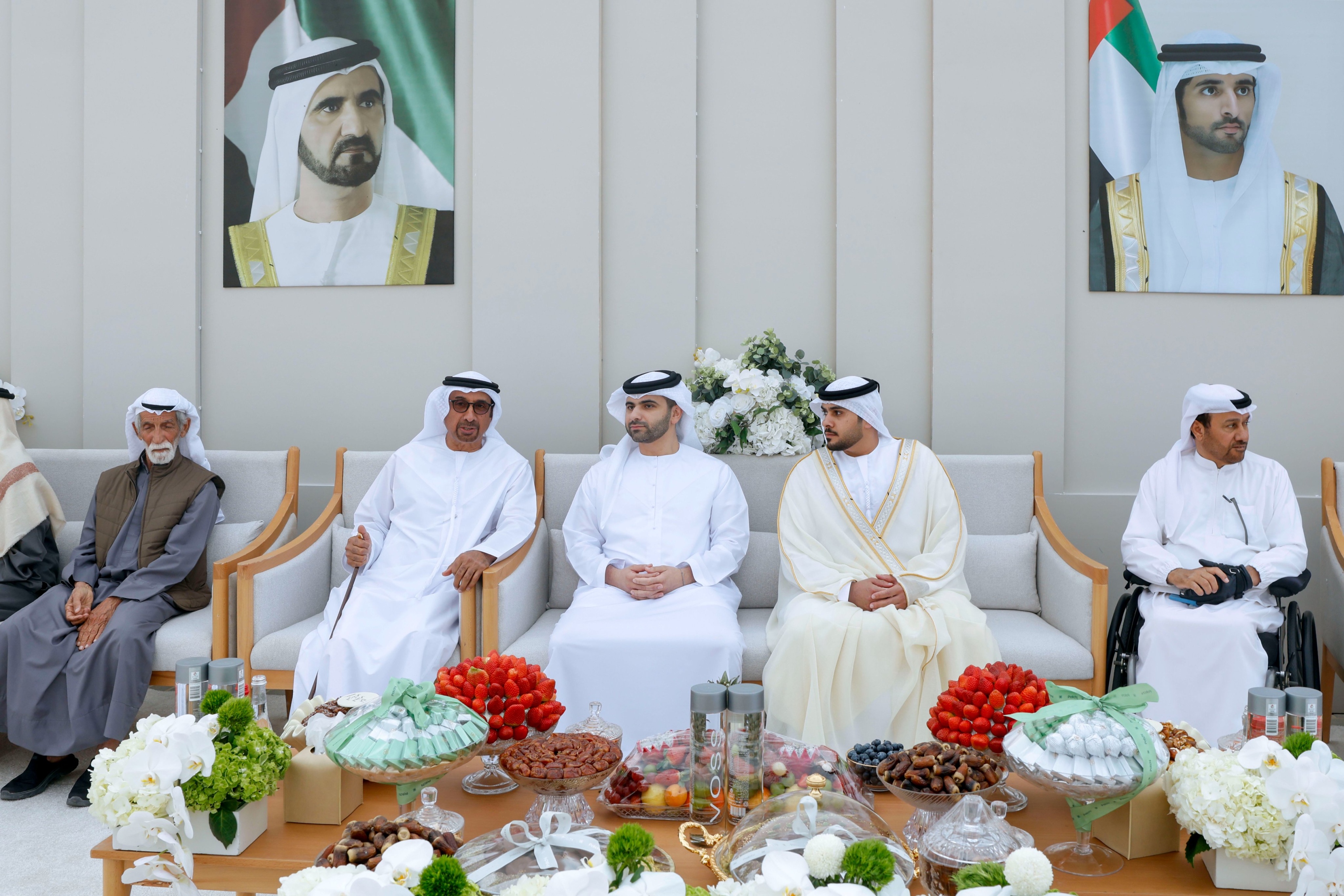 حضر سمو الشيخ منصور بن محمد بن راشد آل مكتوم، رئيس اللجنة الأولمبية الوطنية، حفل الاستقبال الذي أقامه معيوف سلطان جابر المطيوعي، في دبي، بمناسبة زفاف نجله عمر، على كريمة سعيد عبيد خلفان المزروعي.