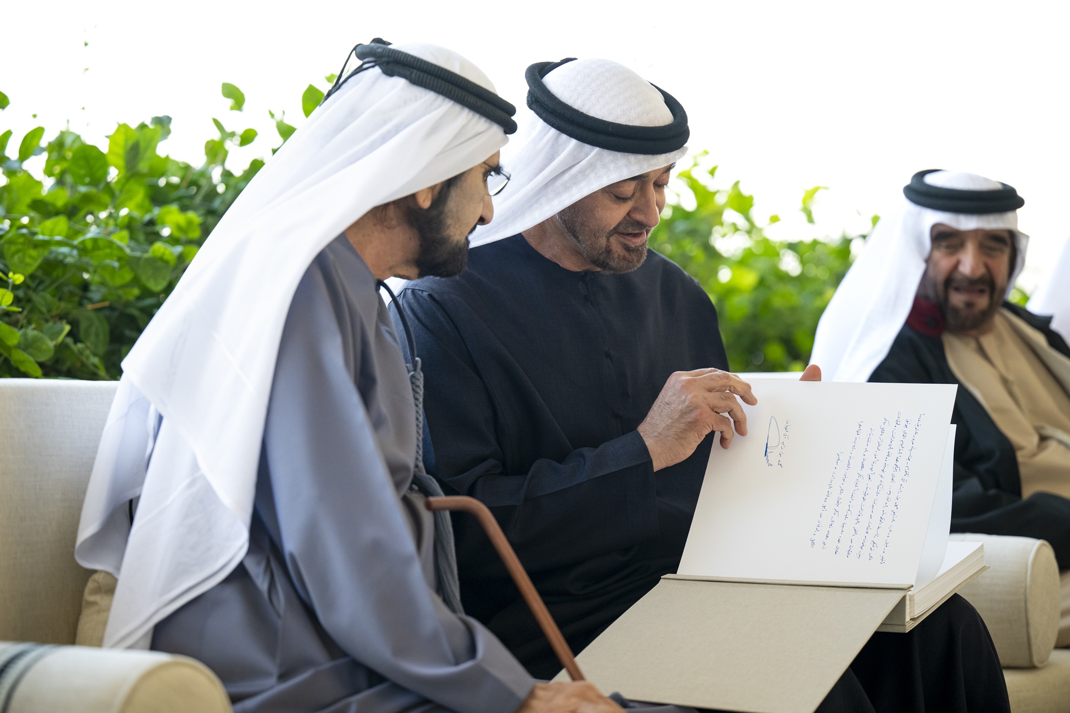 وأهدى صاحب السمو رئيس الدولة أخاه صاحب السمو الشيخ محمد بن راشد آل مكتوم - خلال اللقاء الذي جرى في قصر البحر في أبوظبي - ألبوم صور يحمل توقيع سموه يوثق أبرز المحطات الوطنية والمناسبات التي جمعت سموهما في خدمة دولة الإمارات ومسيرة إنجازاتها ، وذلك بمناسبة مرور عشرين عاماً على تولي سموه رئاسة الحكومة الاتحادية.