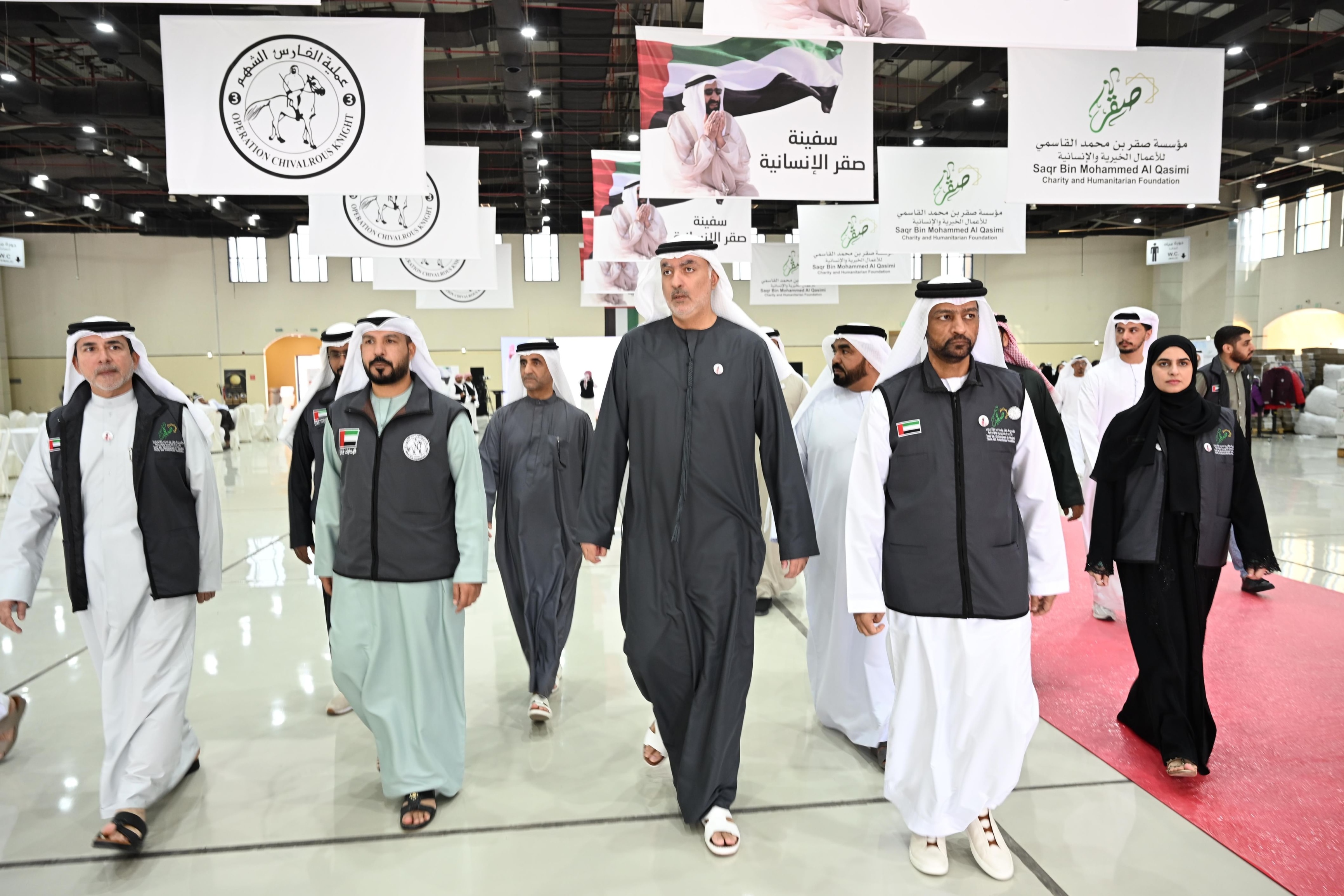 تنفيذاً لتوجيهات صاحب السمو الشيخ سعود بن صقر القاسمي، عضو المجلس الأعلى، حاكم رأس الخيمة، وبمتابعة وحضور الشيخ أحمد بن صقر القاسمي، رئيس مجلس أمناء مؤسسة صقر بن محمد القاسمي للأعمال الخيرية والإنسانية، وبالتعاون مع عملية "الفارس الشهم 3"، باشرت مؤسسة صقر بن محمد القاسمي للأعمال الخيرية والإنسانية، اليوم، أعمال تجهيز الطرود الإغاثية الخاصة بـ"سفينة صقر الإنسانية" في مركز رأس الخيمة للمعارض (إكسبو)، وذلك استعداداً لتحميلها على متن السفينة في مرحلة لاحقة، تمهيداً لتوجّهها إلى ميناء العريش في جمهورية مصر العربية دعماً للأشقاء في قطاع غزة.