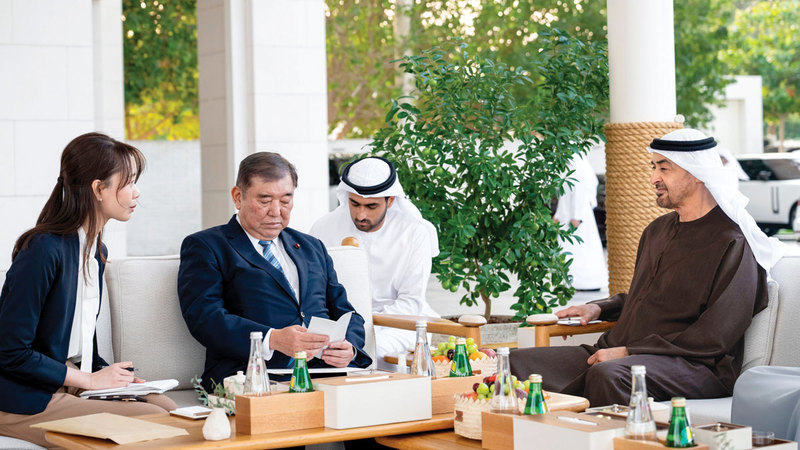 رئيس الدولة خلال استقباله المبعوث الخاص لرئيسة وزراء اليابان بقصر الشاطئ في أبوظبي. وام