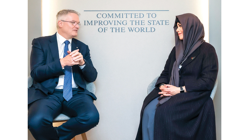 التقت سمو الشيخة لطيفة بنت محمد بن راشد آل مكتوم، رئيسة هيئة الثقافة والفنون في دبي، بالأمين العام لمنظمة التعاون والتنمية الاقتصادية، ماتياس كورمان، وذلك على هامش أعمال الدورة الـ56 من المنتدى الاقتصادي العالمي المنعقد في مدينة دافوس السويسرية.