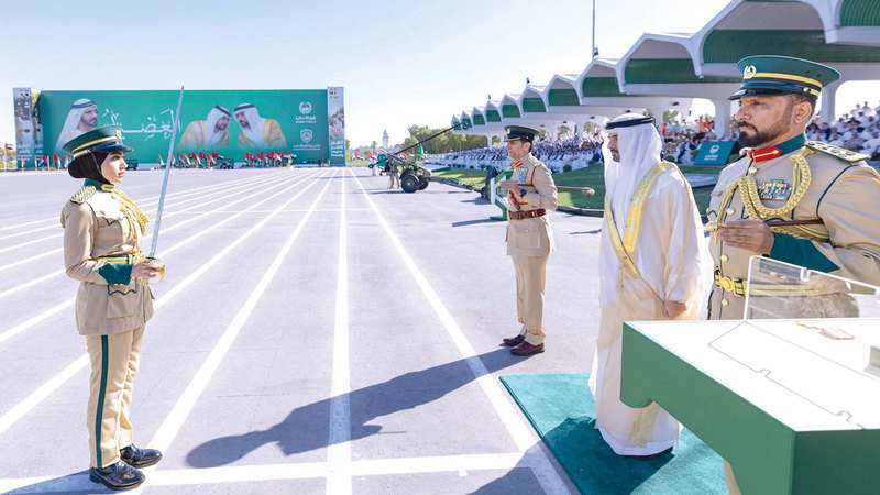 وقد بدأ الحفل بعزف السلام الوطني، ثم قدم الخريجون عرضاً تضمن تشكيلاً لصورة سمو الشيخ مكتوم بن محمد بن راشد آل مكتوم، النائب الأول لحاكم دبي نائب رئيس مجلس الوزراء وزير المالية، جسّدت عمق المعاني والإرث الذي شدّد عليه صاحب السمو الشيخ محمد بن راشد آل مكتوم، (حمدان ومكتوم) السند والعضيد، في مشهد وطني يعكس وحدة الصف وتكامل القيادة، واستحضار روح الدعم والمؤازرة التي تقوم عليها مسيرة الوطن، في حين أظهر العرض المهارات العسكرية والمستوى العالي من اللياقة البدنية والانضباط الذي يتحلى به الخريجون والخريجات.