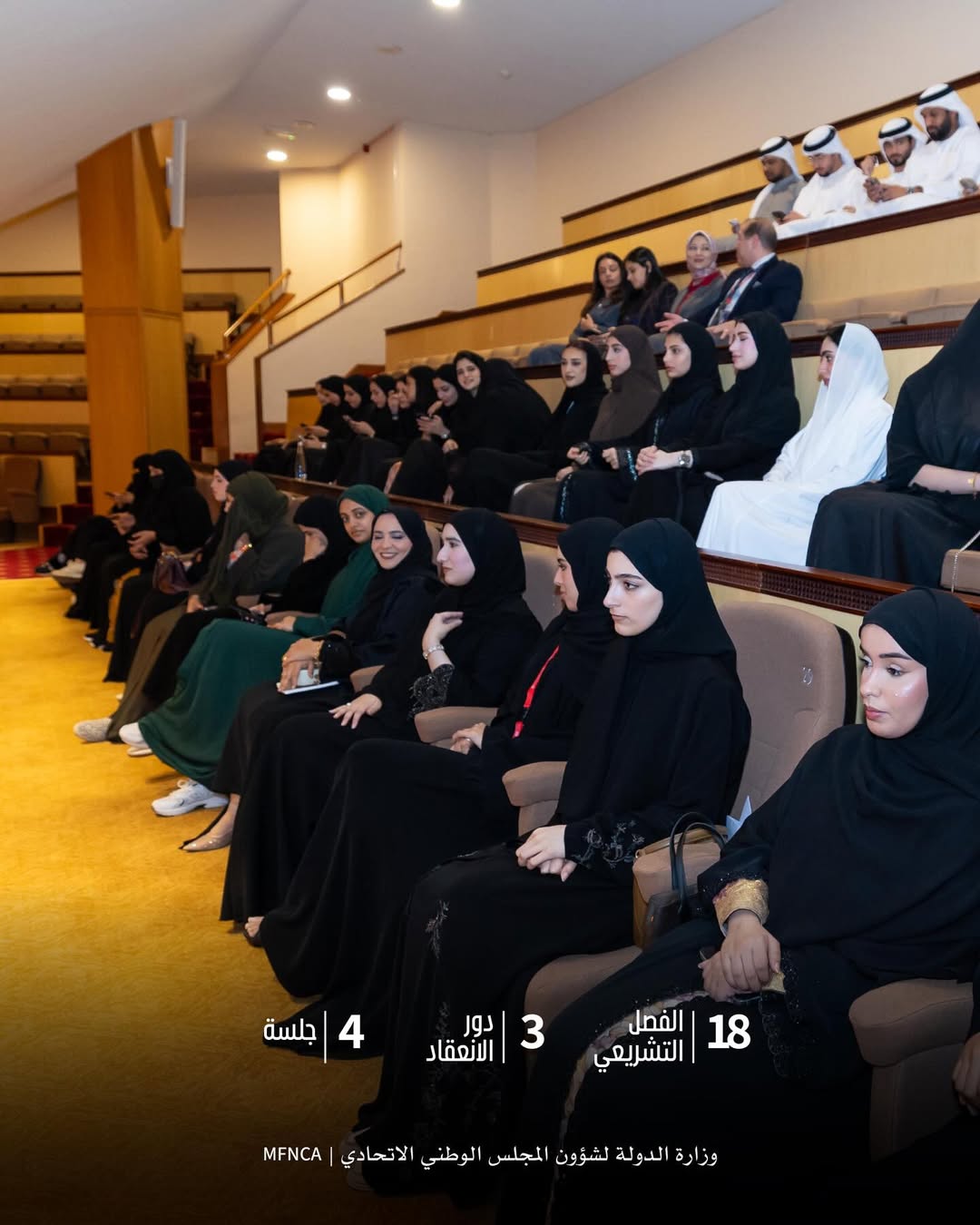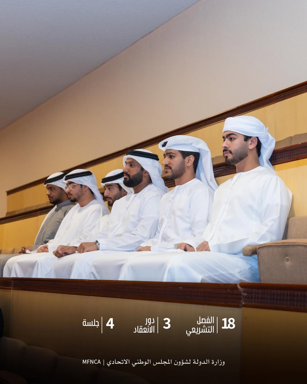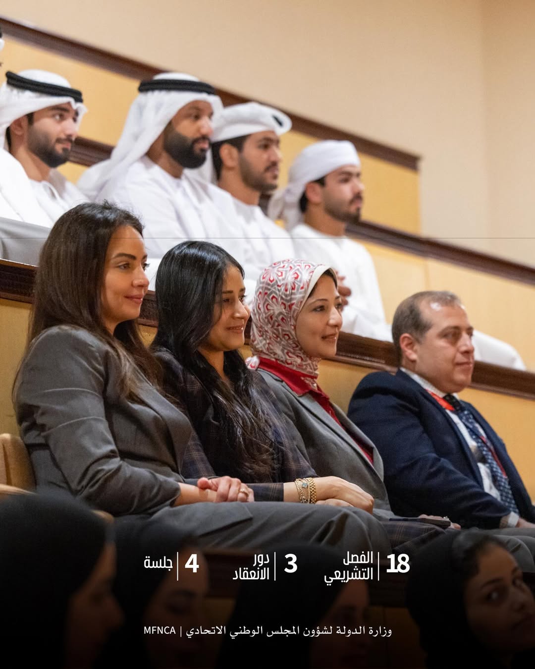 وقالت الوزارة إن الحضور يأتي ضمن مبادرة حضور موظفي الحكومة لجلسات المجلس الوطني الاتحادي، بهدف زيادة وعي موظفي الجهات الحكومية بدور المجلس الوطني الاتحادي وطبيعة الحياة البرلمانية.