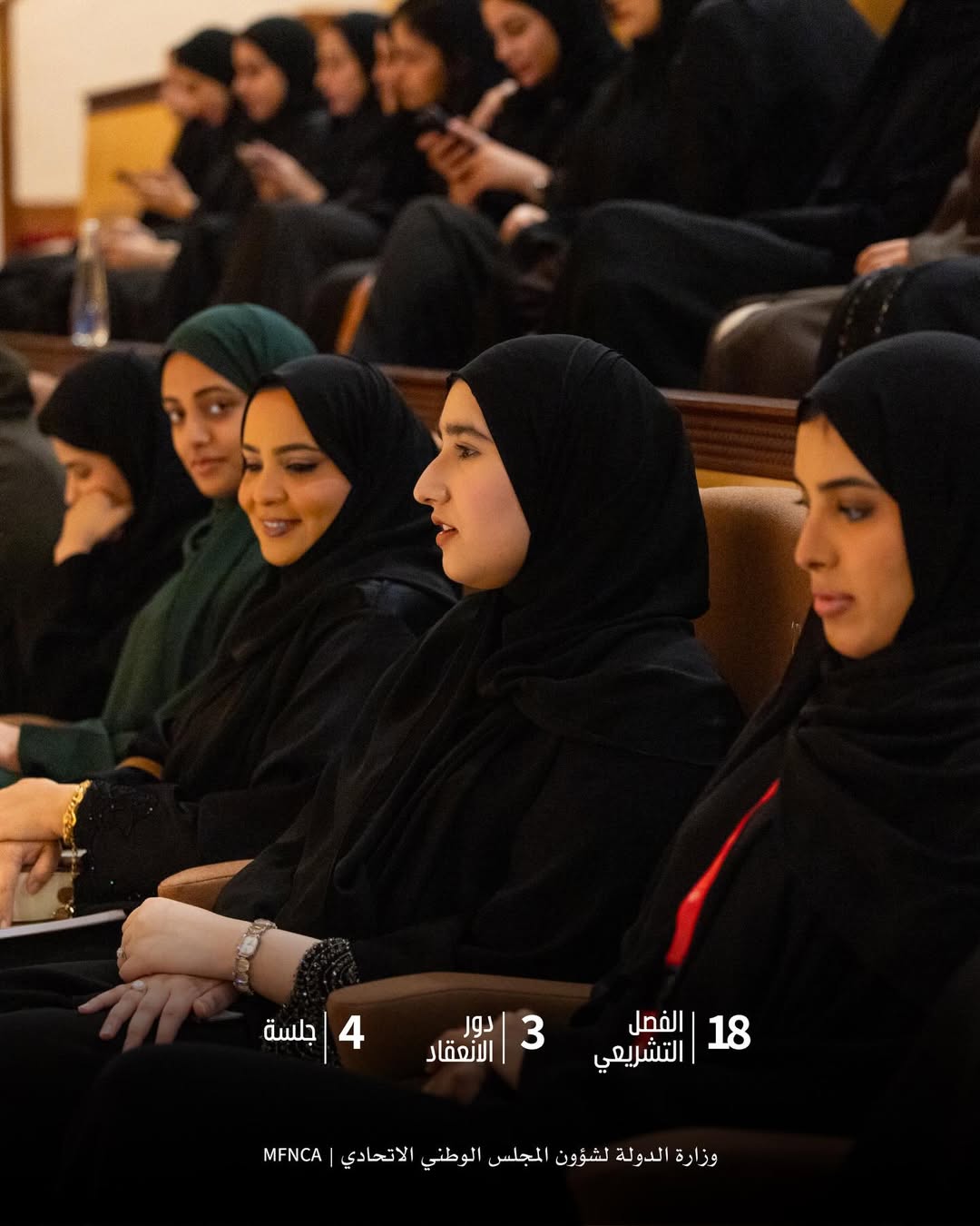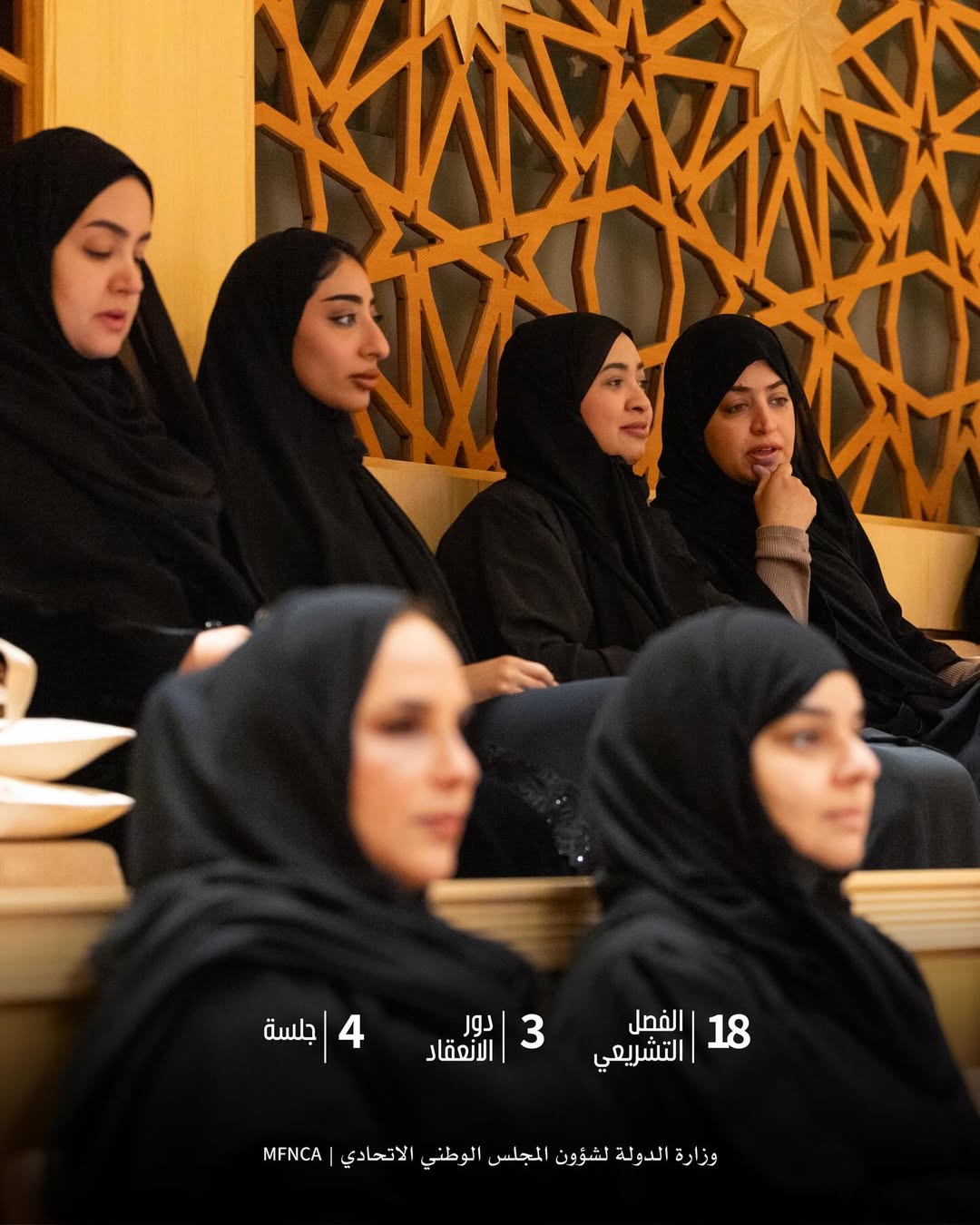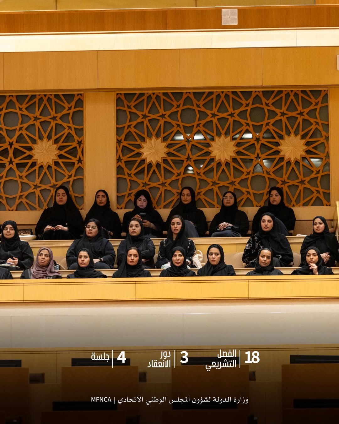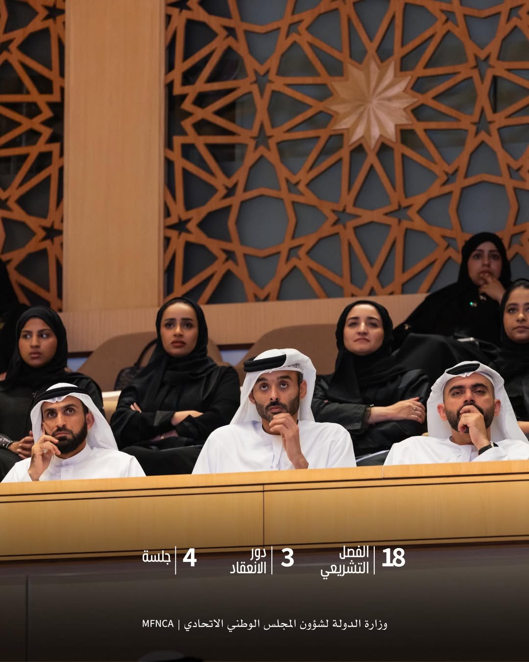 وقالت الوزارة إن الحضور يأتي ضمن مبادرة حضور موظفي الحكومة لجلسات المجلس الوطني الاتحادي، بهدف زيادة وعي موظفي الجهات الحكومية بدور المجلس الوطني الاتحادي وطبيعة الحياة البرلمانية.