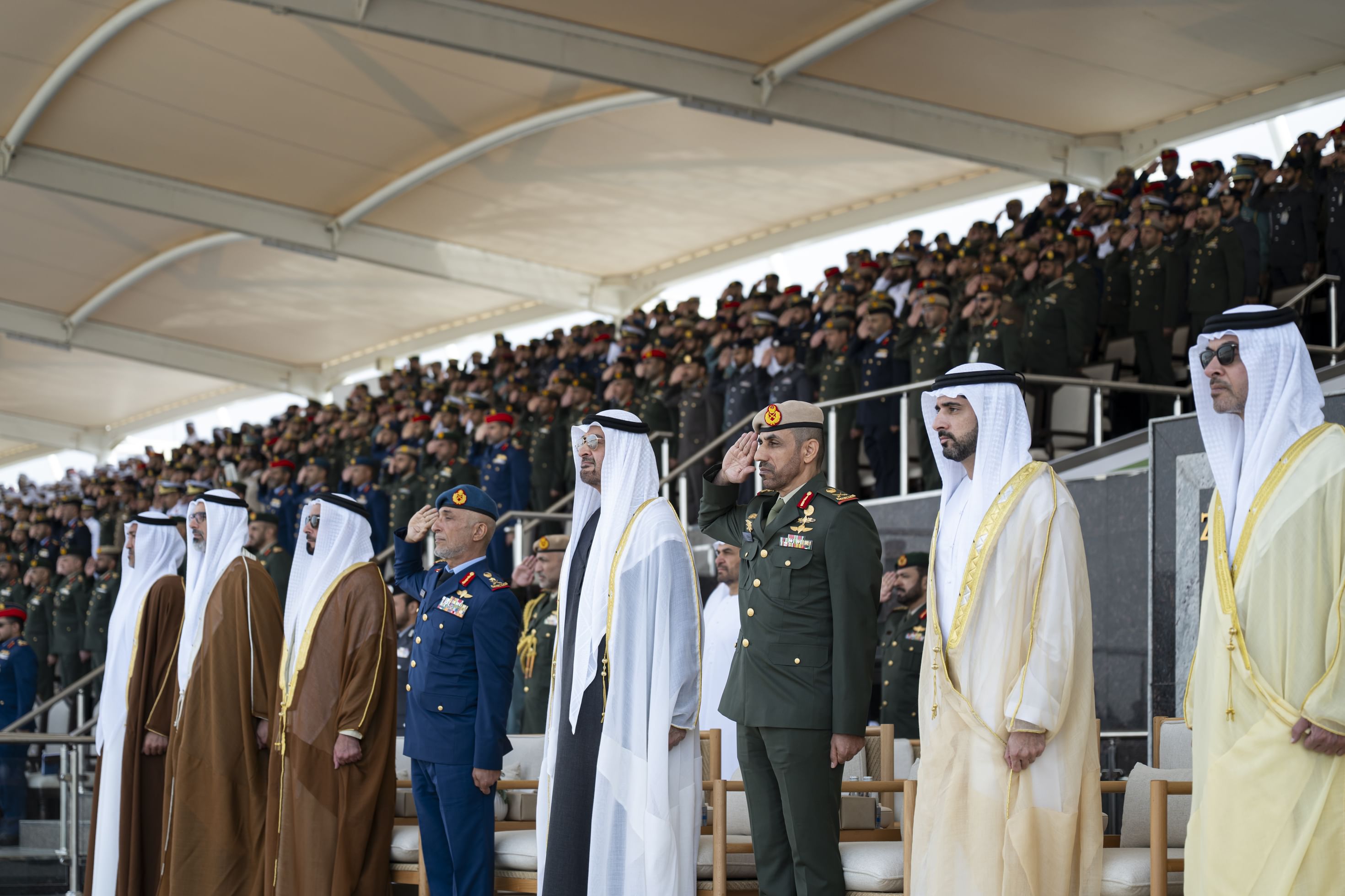 وهنأ صاحب السمو الشيخ محمد بن زايد آل نهيان رئيس الدولة "حفظه الله" الخريجين، متمنياً لهم التوفيق في مسيرتهم العسكرية المقبلة لخدمة الوطن والدفاع عن مكتسباته وتجسيد القيم الأصيلة لدولة الإمارات في دعم الاستقرار والسلام في المنطقة والعالم، وتعزيز النهج الإنساني للدولة على الساحتين الإقليمية والدولية.