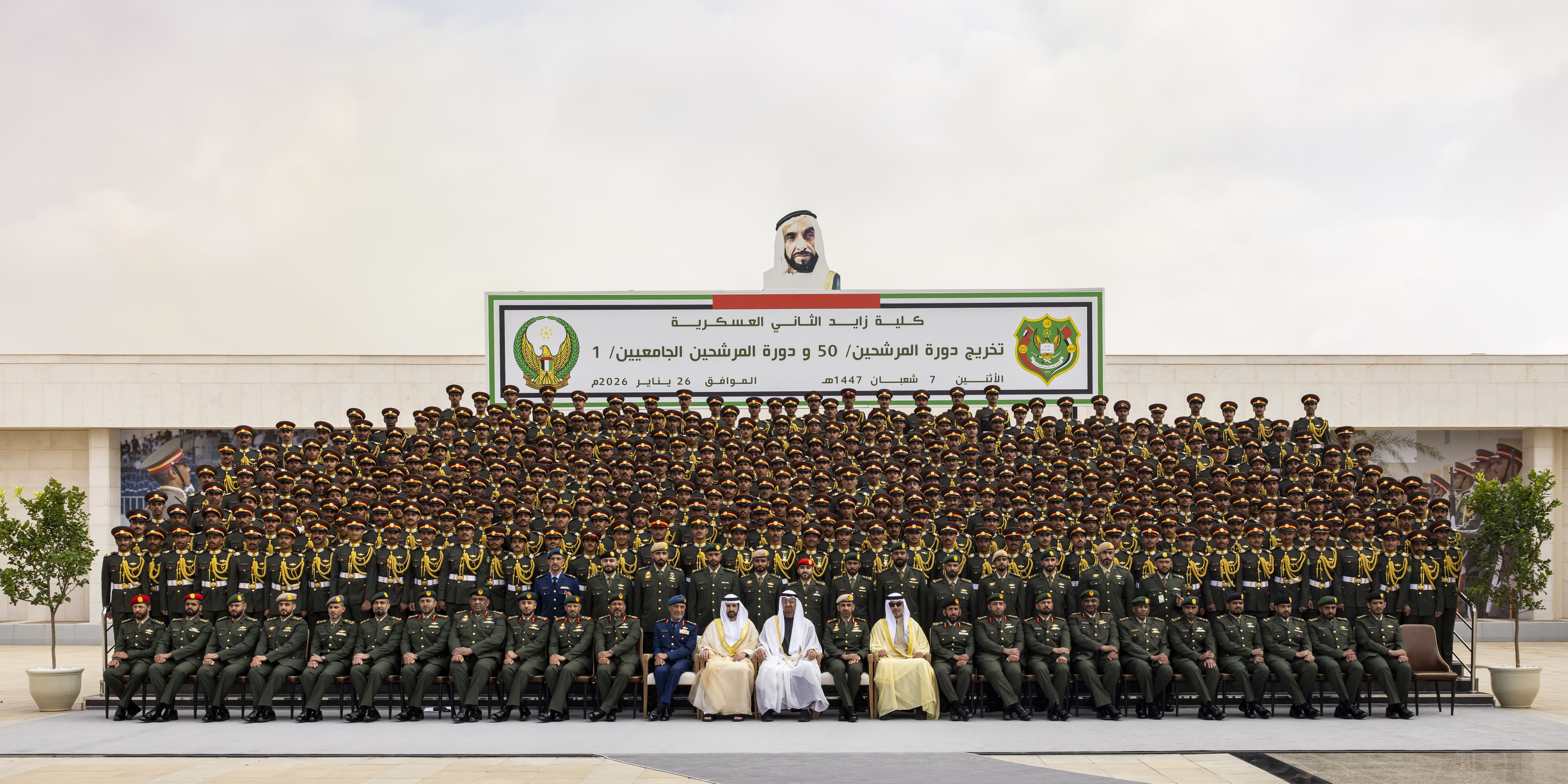 رئيس الدولة يشهد تخريج الدورتين الـ50 للمرشحين والأولى للمرشحين الجامعيين من كلية زايد الثاني العسكرية