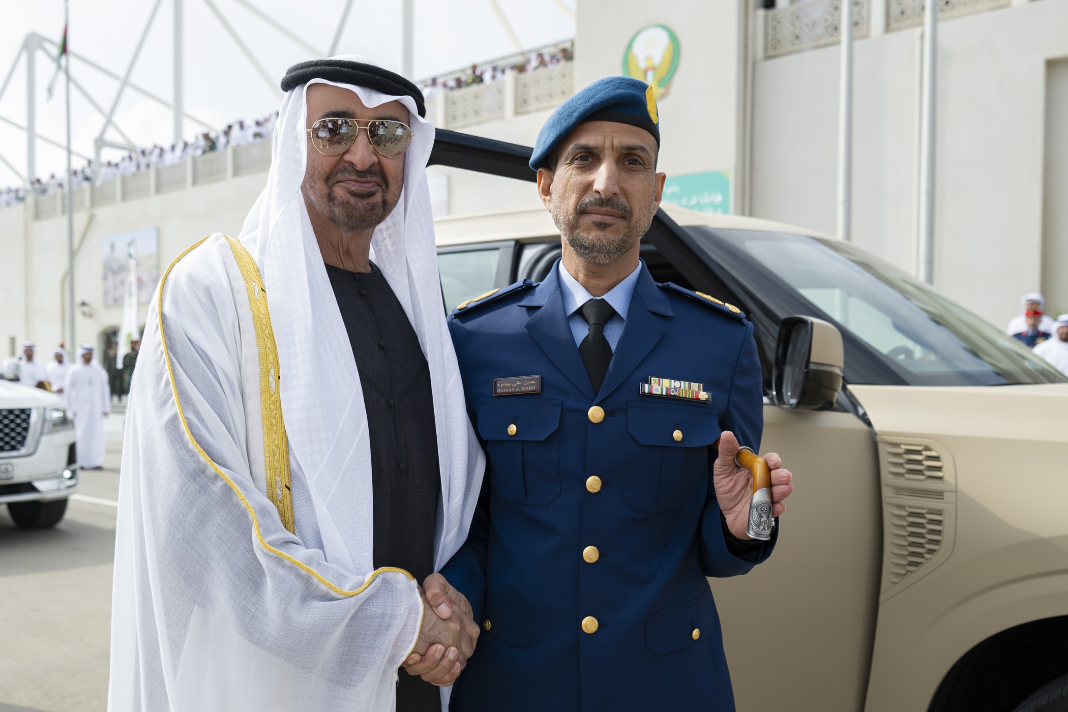 شهد صاحب السمو الشيخ محمد بن زايد آل نهيان رئيس الدولة "حفظه الله" اليوم حفل تخريج الدورة الـ 50 للمرشحين والدورة الأولى للمرشحين الجامعيين من كلية زايد الثاني العسكرية في منطقة العين.