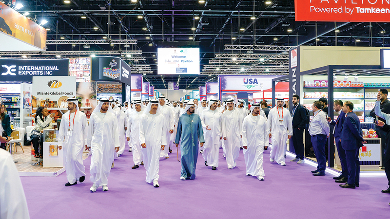 وقال صاحب السمو الشيخ محمد بن راشد آل مكتوم، في تدوينة على منصة «إكس»، أمس: «خلال زيارتي اليوم لمعرض غلفود للأغذية 2026 في مركز دبي للمعارض بمدينة إكسبو الذي استثمرنا في توسعاته 10 مليارات درهم، ليكون قادراً على استضافة الفعاليات الضخمة.. معرض غلفود الذي يعقد أيضاً في مركز دبي التجاري العالمي في الوقت نفسه يعتبر إحدى هذه الفعاليات السنوية المميزة في دبي، حيث تضاعف حجمه 100% عن الدورة السابقة بمشاركة 195 دولة، و8500 مؤسسة تستعرض أكثر من 1.5 مليون منتج.. ما يجعله بين الأكبر عالمياً في قطاعه».