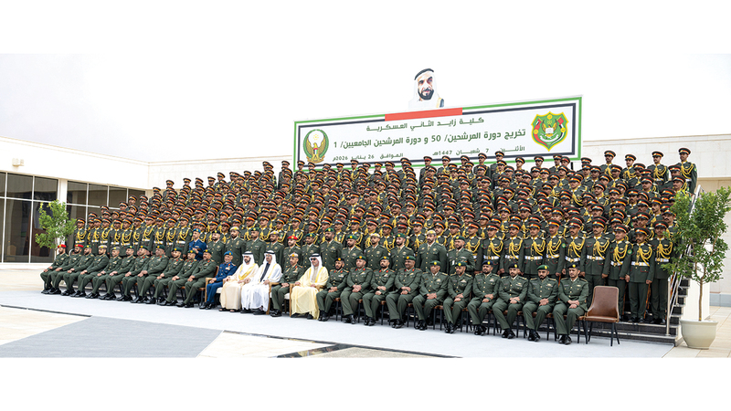 شهد حفل تخريج الدورتين الـ 50 للمرشحين والأولى للمرشحين الجامعيين من كلية زايد الثاني العسكرية