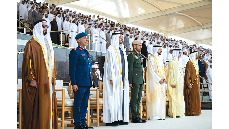 شهد صاحب السمو الشيخ محمد بن زايد آل نهيان رئيس الدولة، حفظه الله، أمس، حفل تخريج الدورة الـ 50 للمرشحين والدورة الأولى للمرشحين الجامعيين من كلية زايد الثاني العسكرية في منطقة العين.