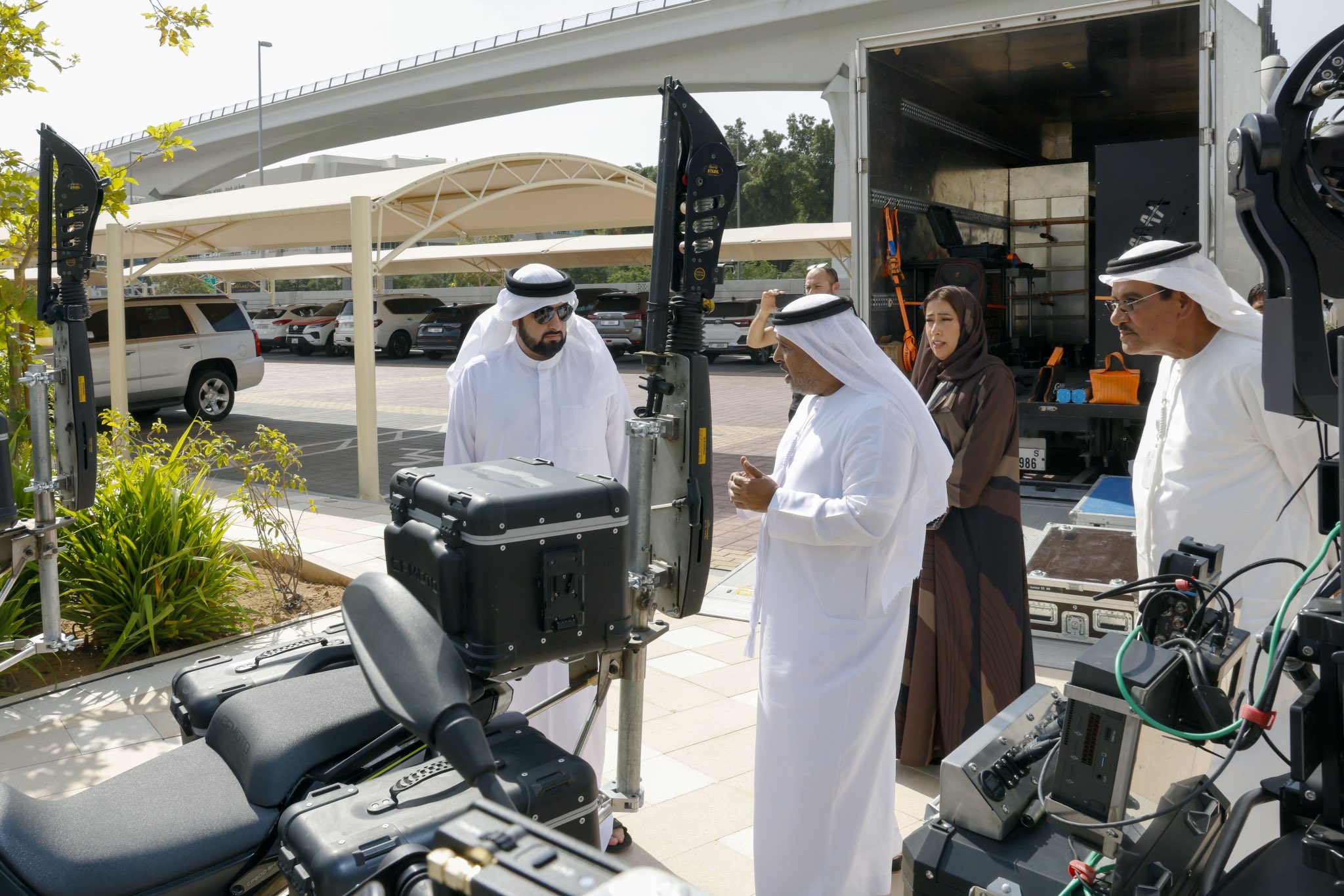 واطلع سموّه على هامش الاجتماع، على أحدث تقنيات البث الخارجي لدى مؤسسة دبي للإعلام وشركائها، حيث تستخدم تكنولوجيا هي الأولى من نوعها في منطقة الشرق الأوسط.